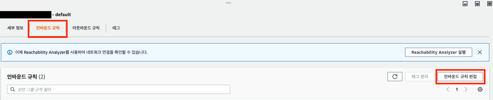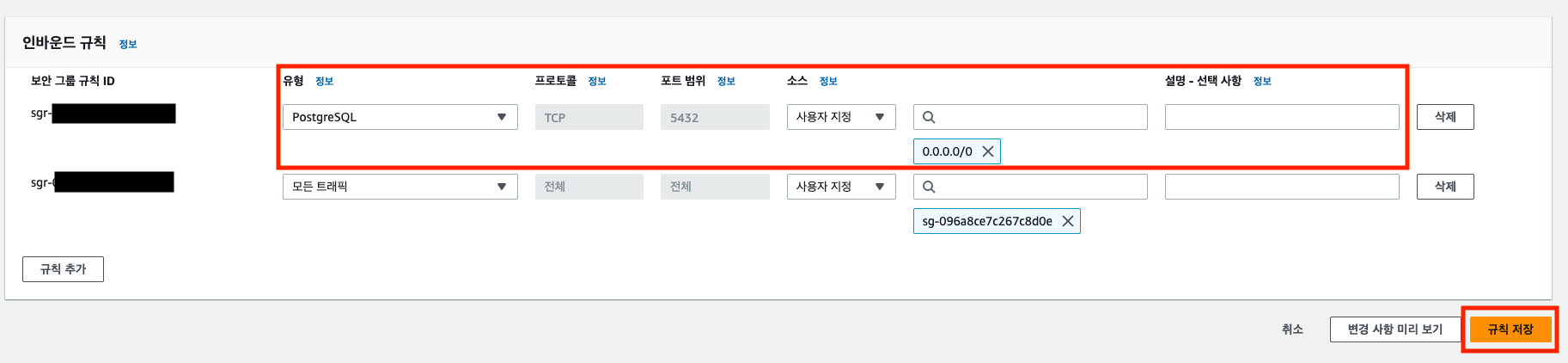 - VPC 보안 그룹의 '인바운드 규칙 지정'