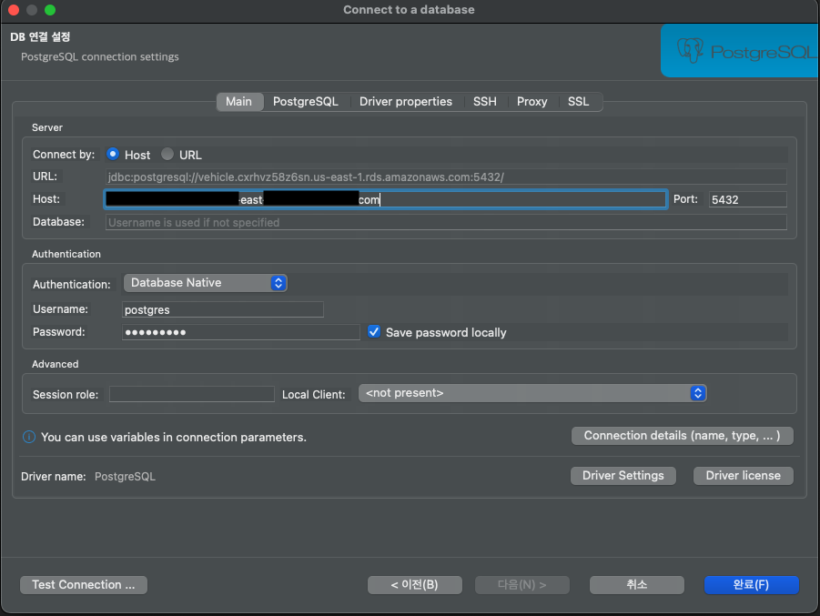- Database : 데이터베이스 옵션에서 초기 데이터베이스 값 (지정하지 않았을 경우 공란)