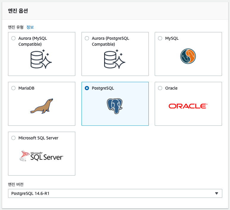 - 원하는 데이터베이스 엔진과 버전을 선택할 수 있다.