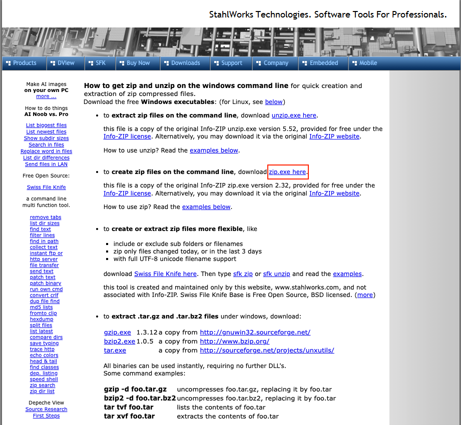 How to get zip and unzip on the windows command line for quick creation and extraction of zip compressed files. Download the free Windows executables: (for Linux, see below) to extract zip files on the command line, download unzip.exe here. this file is a