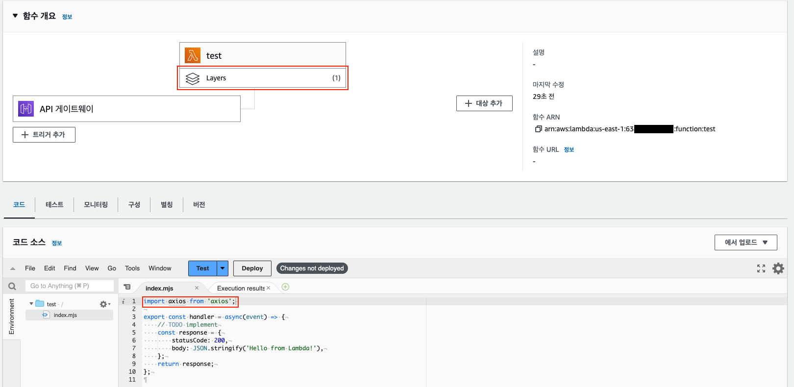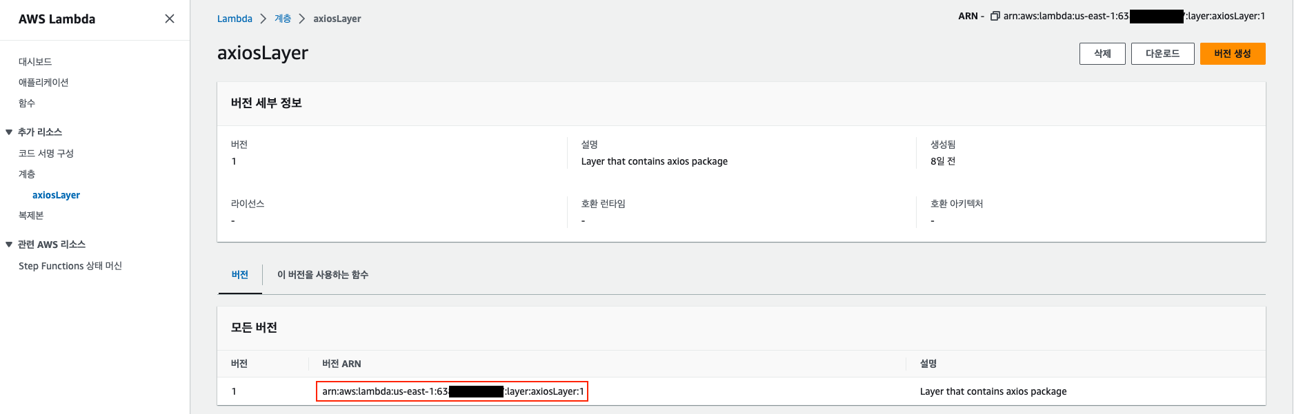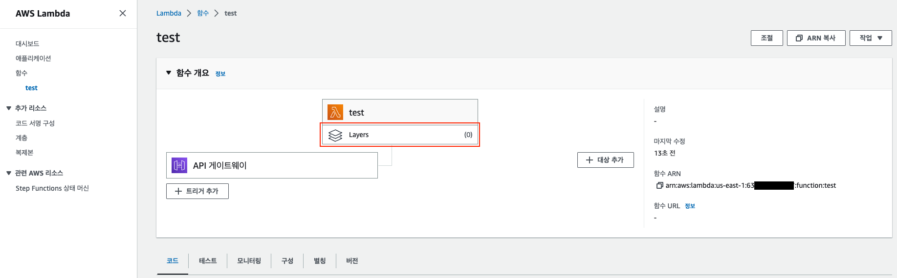 1. 생성된 계층의 ARN을 복사한다.