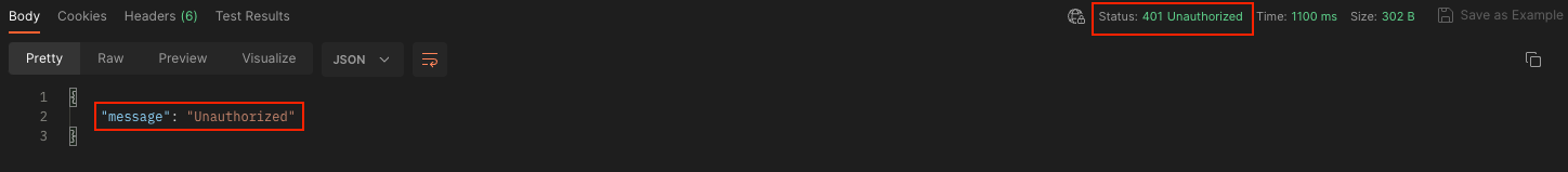 - 인증이 실패할 경우 Status : 401과 Unauthorized 메세지가 나타난다.