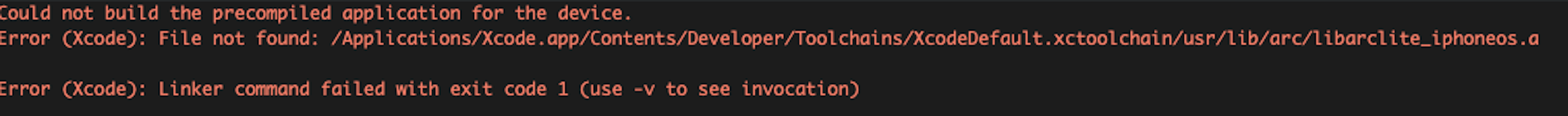Error (Xcode) File not found: /Applications/Xcode.app/Contents/Developer/Toolchains/XcodeDefault.xctoolchain/usr/lib/arc/libarclite_iphoneos.a