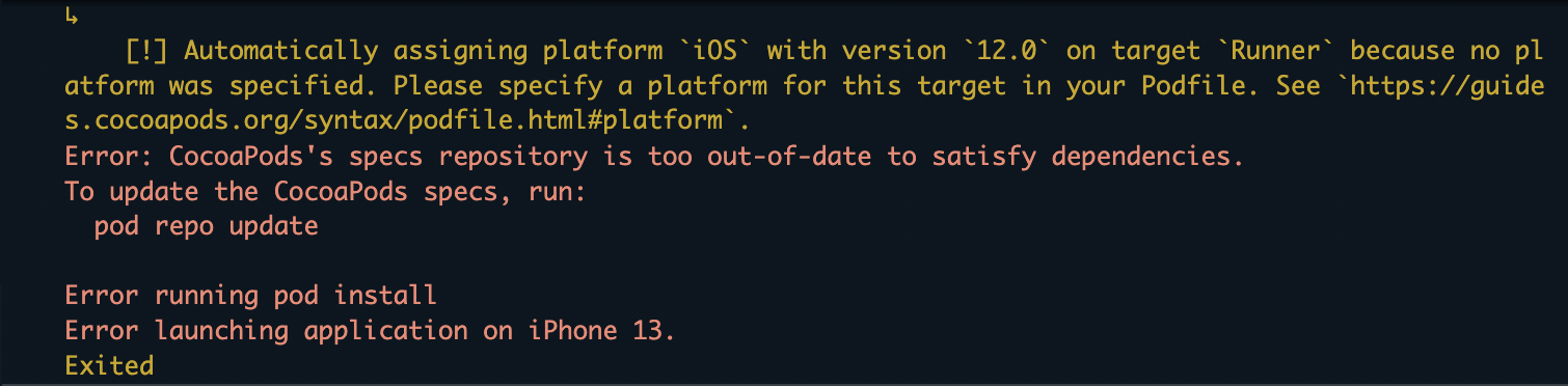 Flutter에서 iOS 빌드 시 종종 발생하는 에러이다.