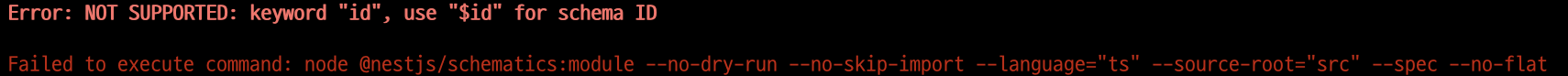 그러다 '@nestjs/schematics' 패키지 버전 문제일 수도 있다 판단하여 버전을 확인해 보았지만 당연하게도 최신 버전이었고 이전 버전에서도 동일한 에러가 나타났다.