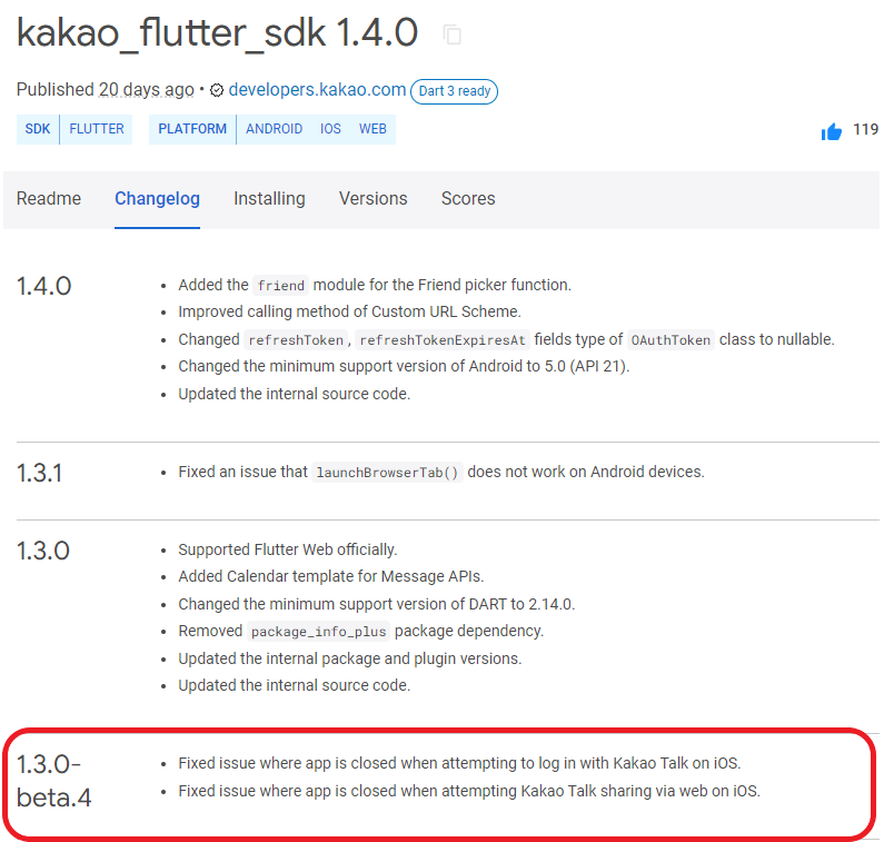 But. 우회적인 처리 방법이지만 해당 문제에 대해 개선된 버전이 등록되었다. 카카오 짱! :)
