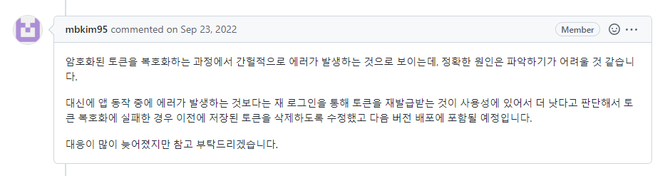 위 문제로 git에 issue를 등록했던 내용을 회상하며 기록을 남기고자한다.